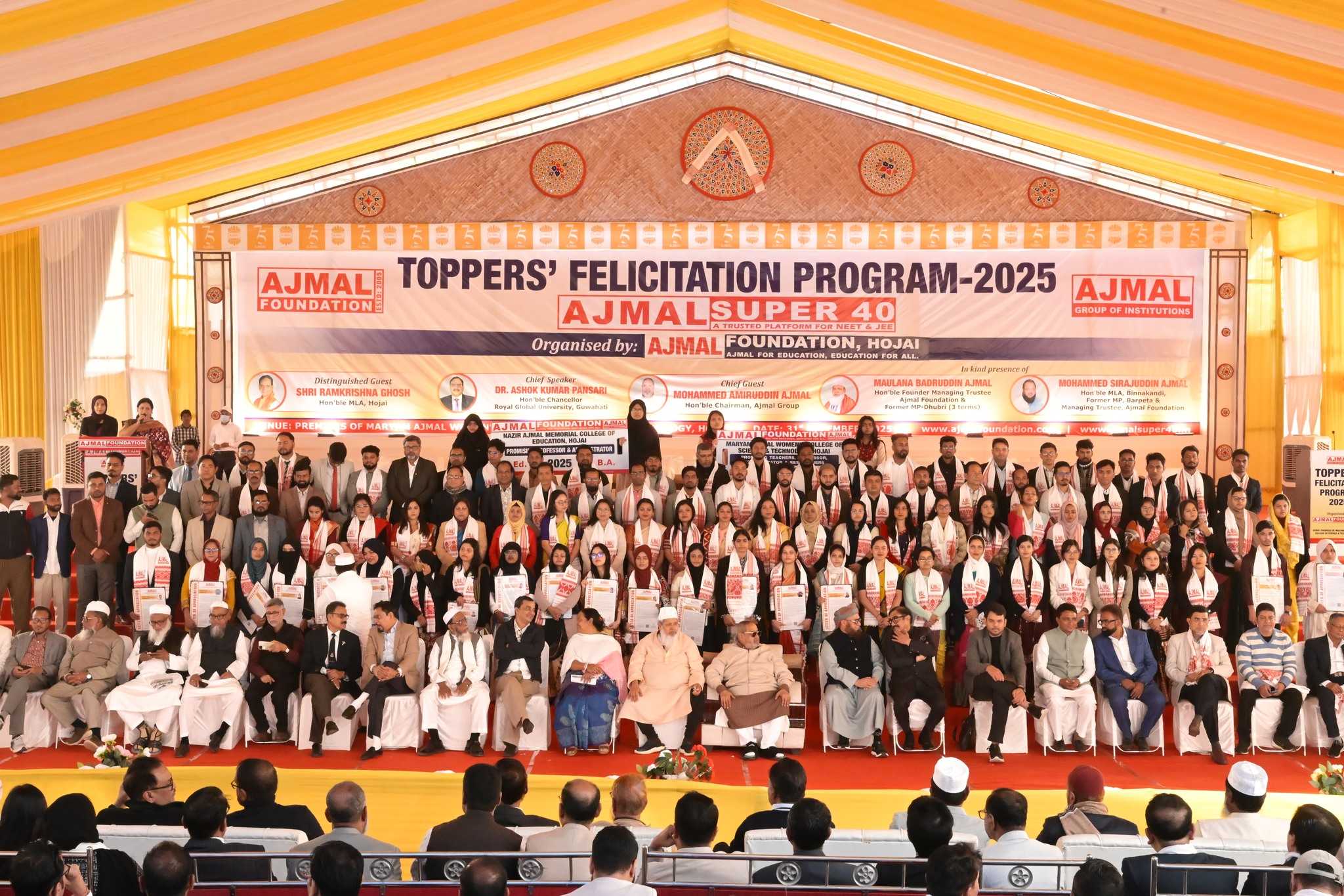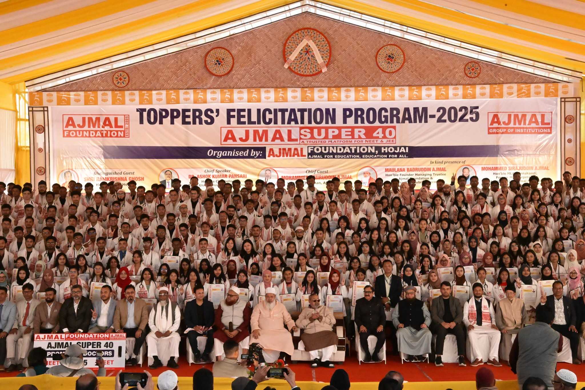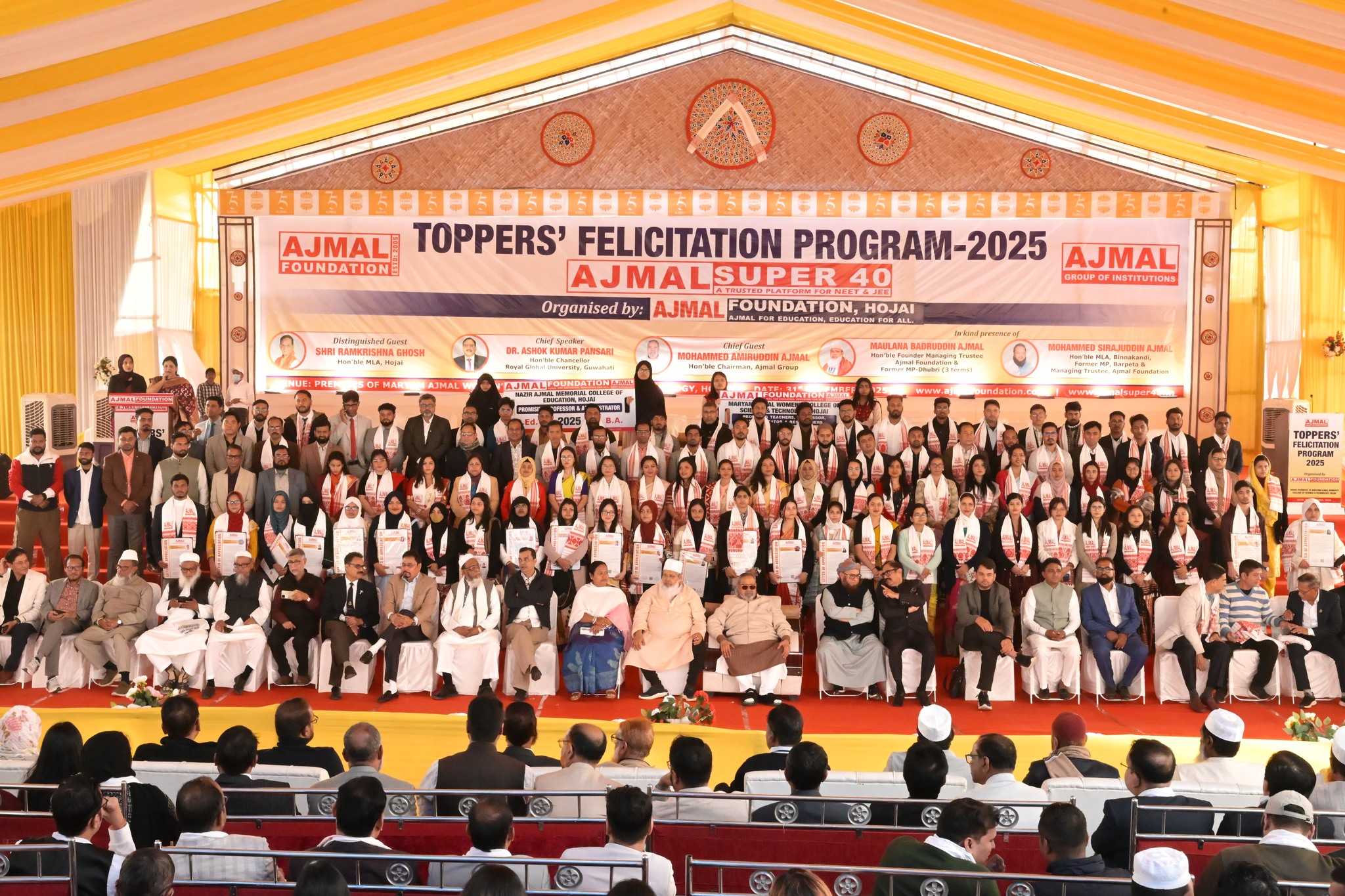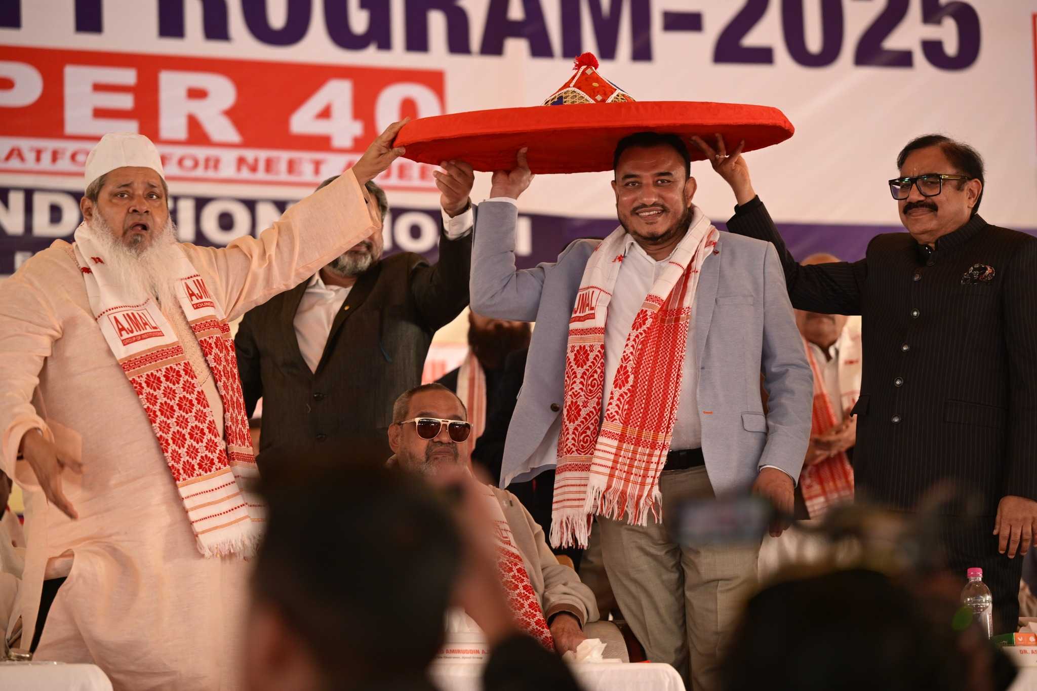 HOJAI, Dec 31: Over 550 meritorious students of Ajmal Super-40 were honoured at a grand felicitation ceremony held at Maryam Ajmal Women’s College of Science and Technology in Hojai on Wednesday, celebrating their outstanding performance in NEET and JEE 2025 examinations. The students have secured admission to some of India’s top medical and engineering institutions, marking a historic achievement for the region.