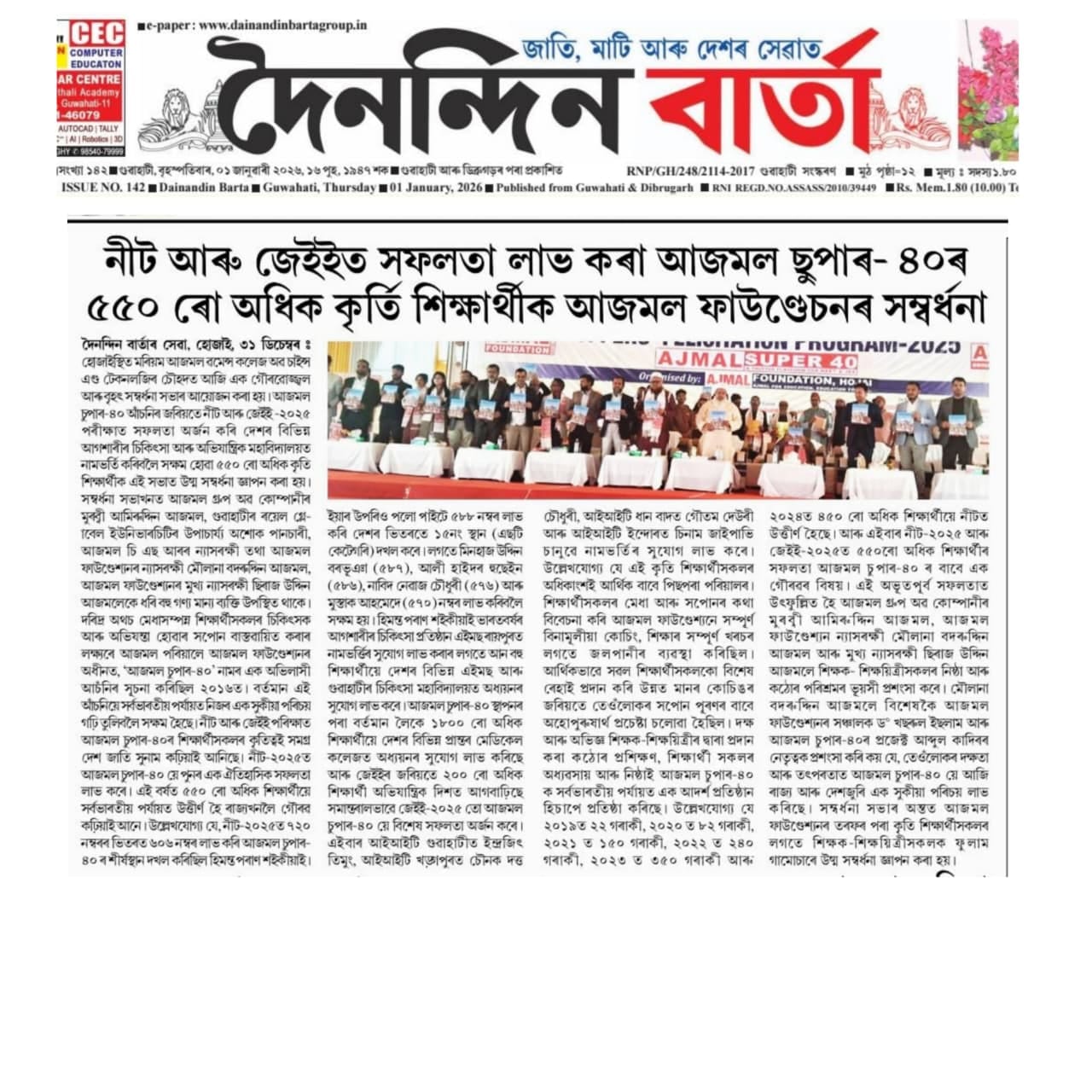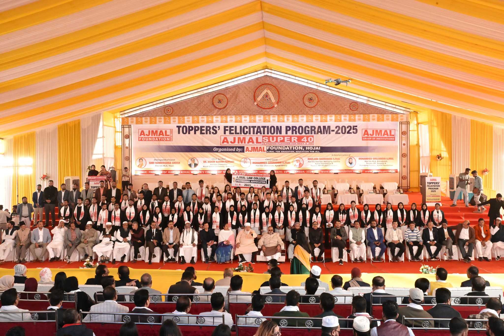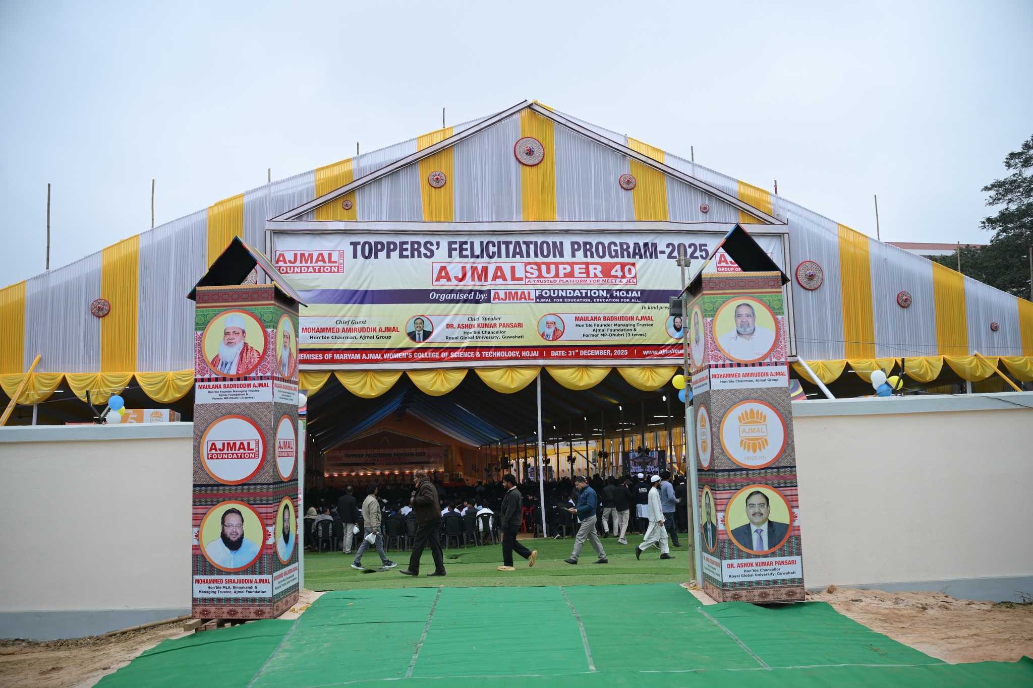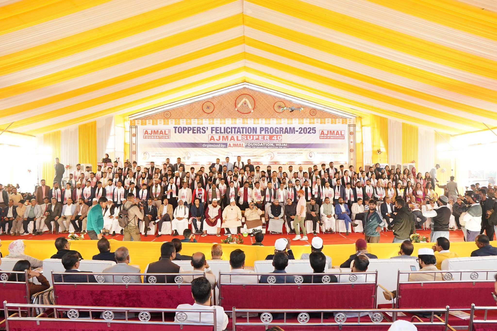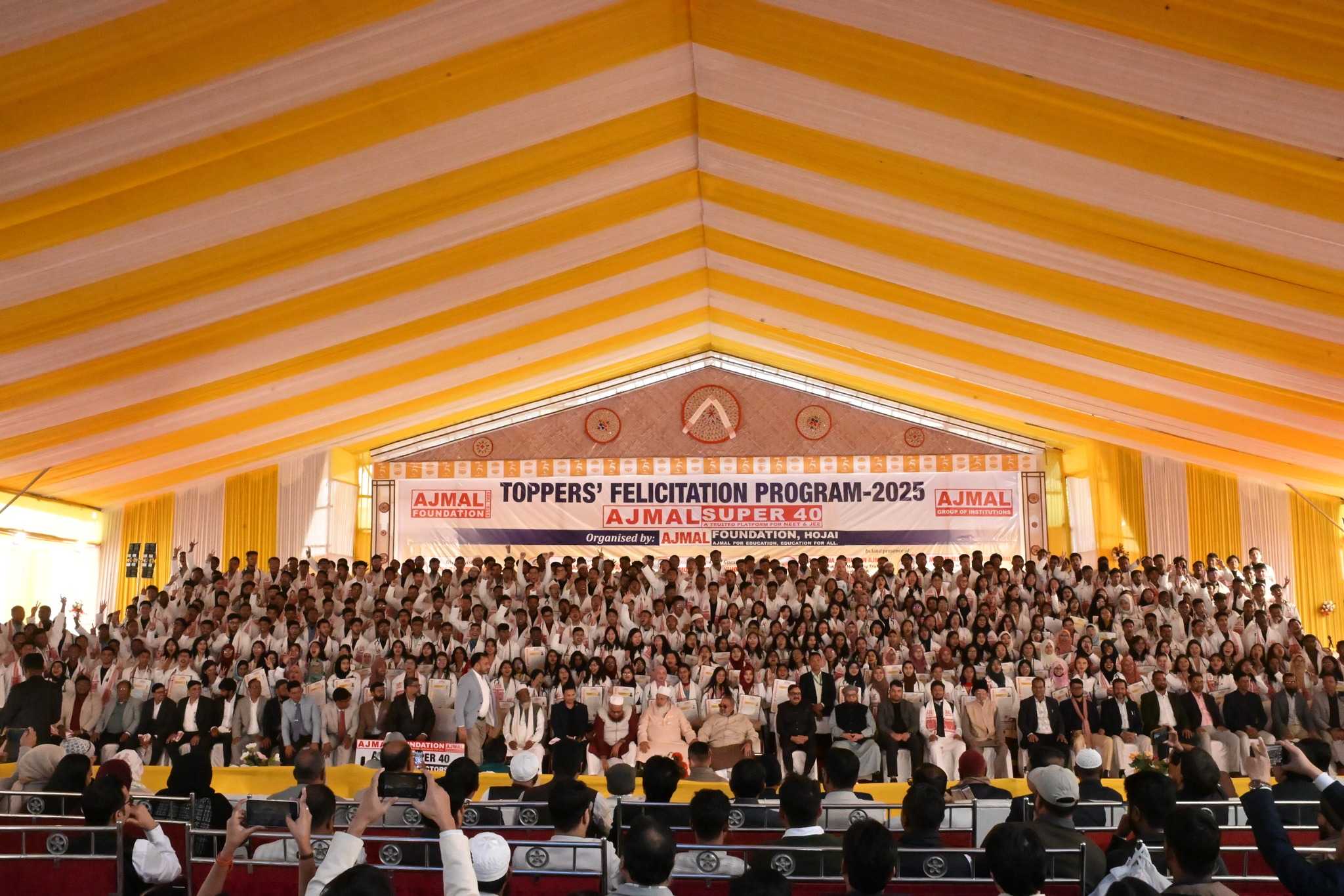 HOJAI, Dec 31: Over 550 meritorious students of Ajmal Super-40 were honoured at a grand felicitation ceremony held at Maryam Ajmal Women’s College of Science and Technology in Hojai on Wednesday, celebrating their outstanding performance in NEET and JEE 2025 examinations. The students have secured admission to some of India’s top medical and engineering institutions, marking a historic achievement for the region.